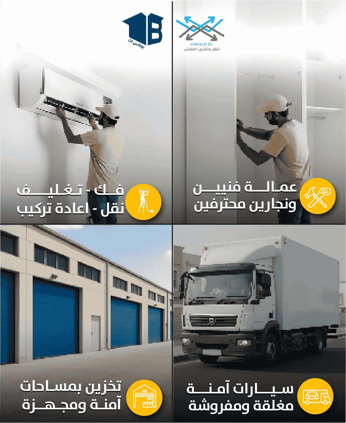 بعد ما قمت بـ تخزين أغراضك وتغليفها، تجي مرحلة نقلها إلى مكان التخزين. هنا، الاحترافية تفرق. إذا كنت تبغى خدمة تخزين عفش في الرياض موثوقة، أنصحك بشركة دار الاتجاهات. شراكتنا معهم في متجر بوكس ات تضمن لك خدمة متكاملة: من توفير أفضل مواد التخزين، إلى فريق عمل مدرب يفهم أهمية التعامل مع الأغراض بحذر، ومستودعات آمنة ومراقبة. زيارتك لموقعهم على راح تعطيك فكرة عن جودة خدمات تخزين العفش اللي يقدمونها.